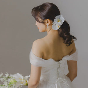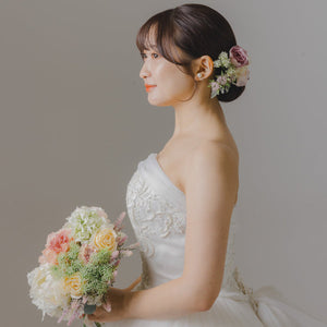 ブーケと色味が同一のお花を茎の部分から長さのあるヘッドピースとしてご用意いたします。