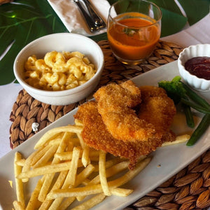 ①チキンフィンガー&フライドポテト、マカロニ&チーズ