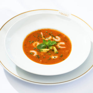 ハワイ島カムエラ産トマトのガスパチョスープ、ベイシュリンプ