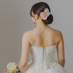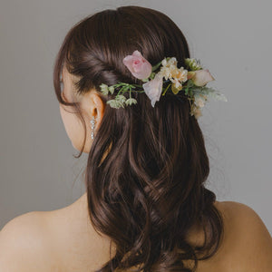 ブーケと色味が同一のお花を茎の部分から長さのあるヘッドピースとしてご用意いたします。