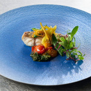 ミーバイのポワレ セミドライトマトとシマナーのソース 島野菜のソテーを添えて