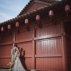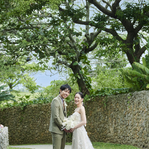 ザ・ヨミタンリゾート アクアグレイス・チャペル近くにある「むら咲むら」という沖縄らしい古民家や自然あふれる観光スポットで撮影します。