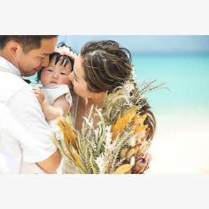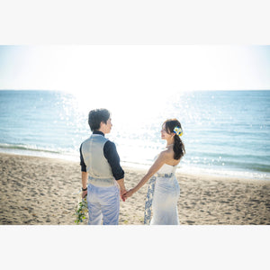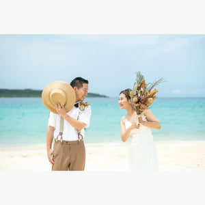 沖縄といえばビーチ、時間帯や日によって海の表情も色々と変わりますがその日の海を一緒に楽しみましょう。沖縄の植物と一緒に撮るのも南国の雰囲気があってオススメです。